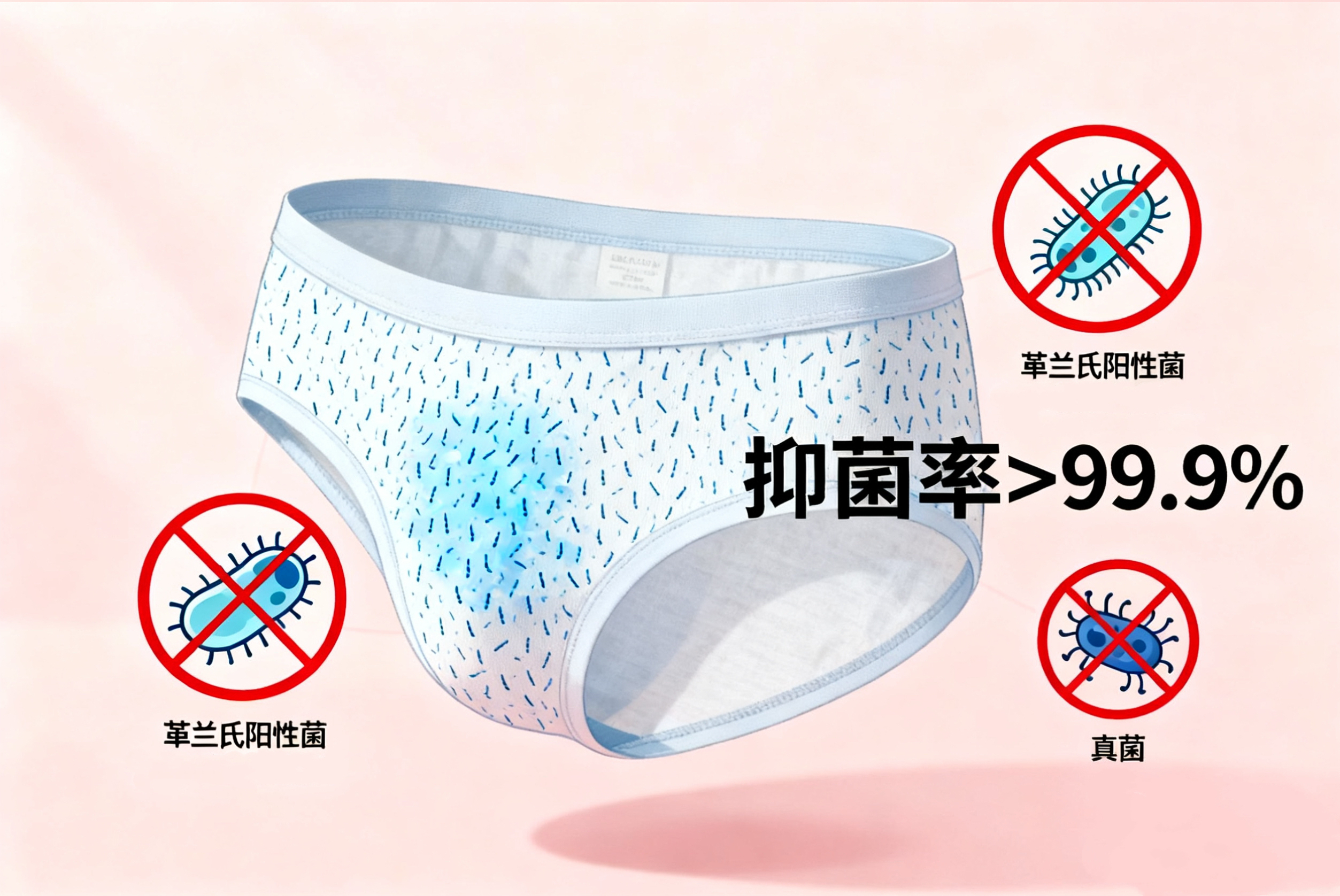消毒液、高温只能短期杀菌,穿时出汗升温,细菌还会冒头。选加了佳新纳特杀菌材料的内裤,才能长效护健康: