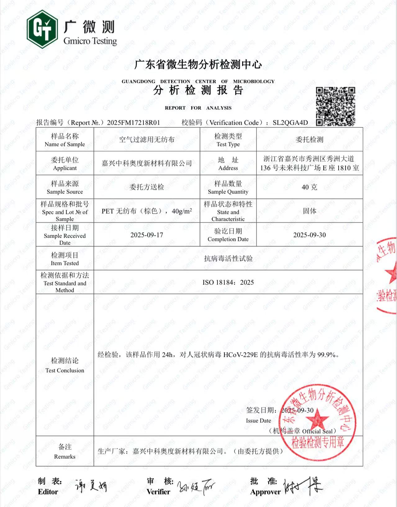 在健康防护日益常态化的今天,嘉兴中科奥度用科技创新回应民生痛点。这款99.9%灭活率的新型材料,不仅破解了密闭空间交叉感染的难题,更彰显了本土企业的责任与担当。未来,我们将持续深耕功能材料研发,让“呼吸安全”走进更多场景,守护每一次自由呼吸!
